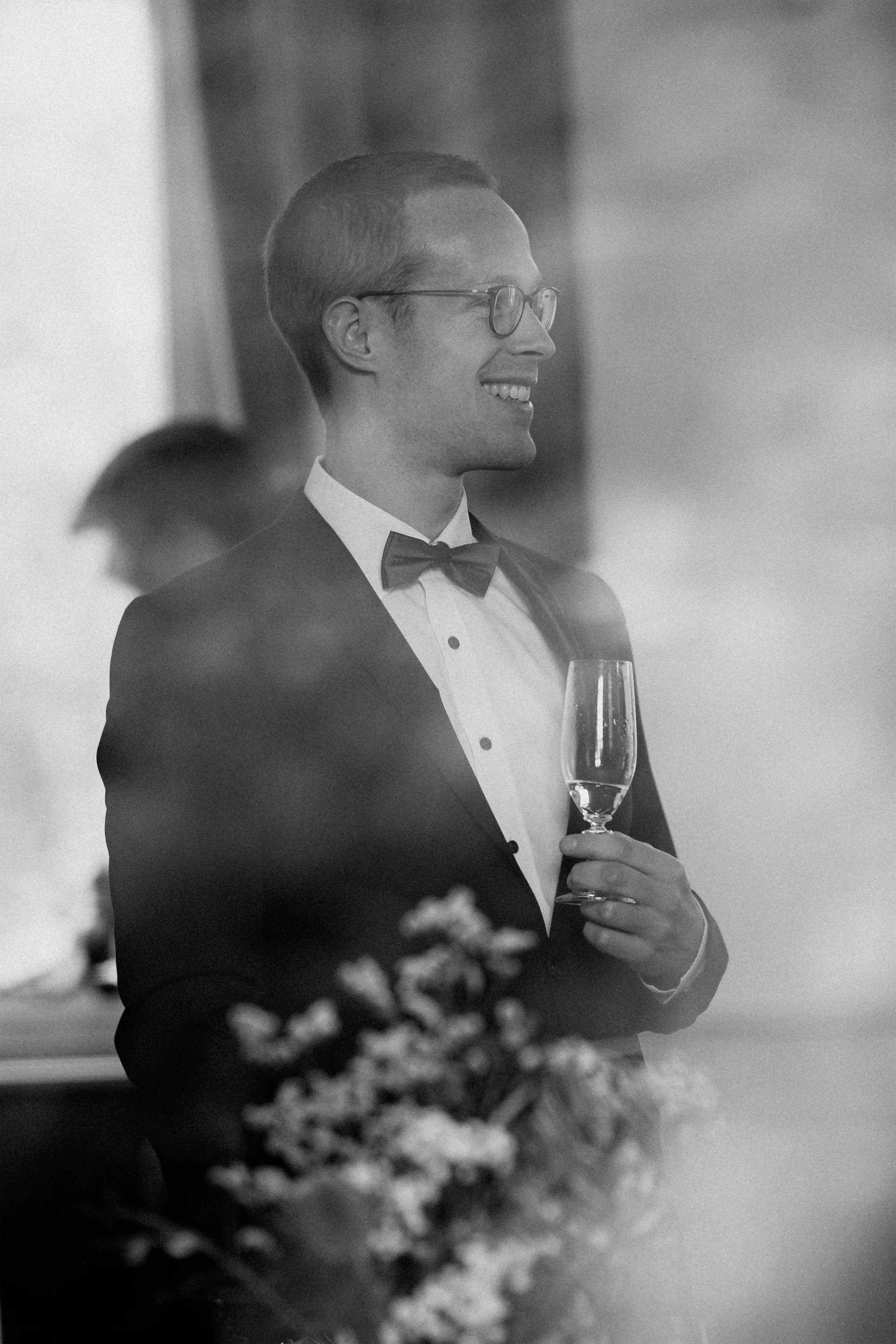 Eva was recommended to us by Rita, who had already shared so many wonderful things about her personality and unique photographic style. And from the very first meeting, it became clear that Eva wasn’t just interested in documenting. She genuinely cared about telling our love story. Our values, our connection, our journey truly mattered to her. With Eva, it was always very personal and meaningful. There was so much to love about.. Her sense for detail, her ability to capture moments in a way that feelt timeless. She moved with the grace of a cat on velvet paws, almost invisible during the ceremony and speeches. And when she was noticed, she never felt intrusive. Her presence put everyone at ease, allowing them to simply be themselves in front of the camera. That authenticity was everything to us. Even Henning, who normally shies away from the camera and is usually done after two shots, was surprised by how relaxed and natural everything felt. Even the “posed” portraits didn’t feel posed. Eva’s intuitive, free-flowing approach made every moment feel real. To this day, guests still talk about her, not just about the photos, but about her presence as their photographer. Her skill at organizing big group shots, her thoughtful little tricks like “close your eyes and then open them”, every detail felt like magic. And a special mention must be made: Eva managed to capture multiple genuine smiles from our 90+ year-old grandfather, something no one had ever achieved before. She wasn’t just the one behind the lens. She became part of our story.